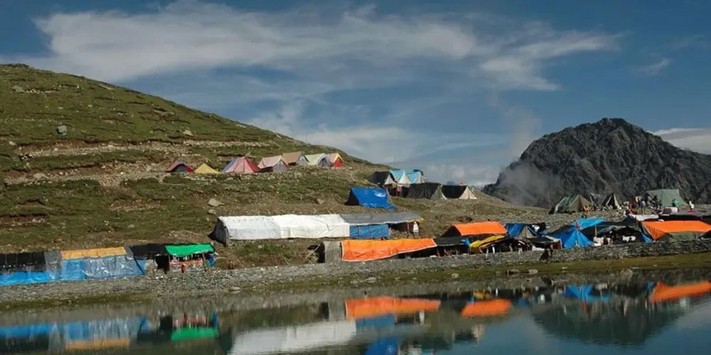Morning start trek to Manimahesh Lake through Banar Ghati. On way visit Shiv Ke Gharat, Sundrasi and Gauri Kund. First view of Kailash from Gauri Kund. Continue trek to Manimahesh Lake. Take holy dip in Lake. Manimahesh Lake is a high altitude lake (13,390 ft)) situated close to the Manimahesh Kailash Peak. Overnight stay in tents.